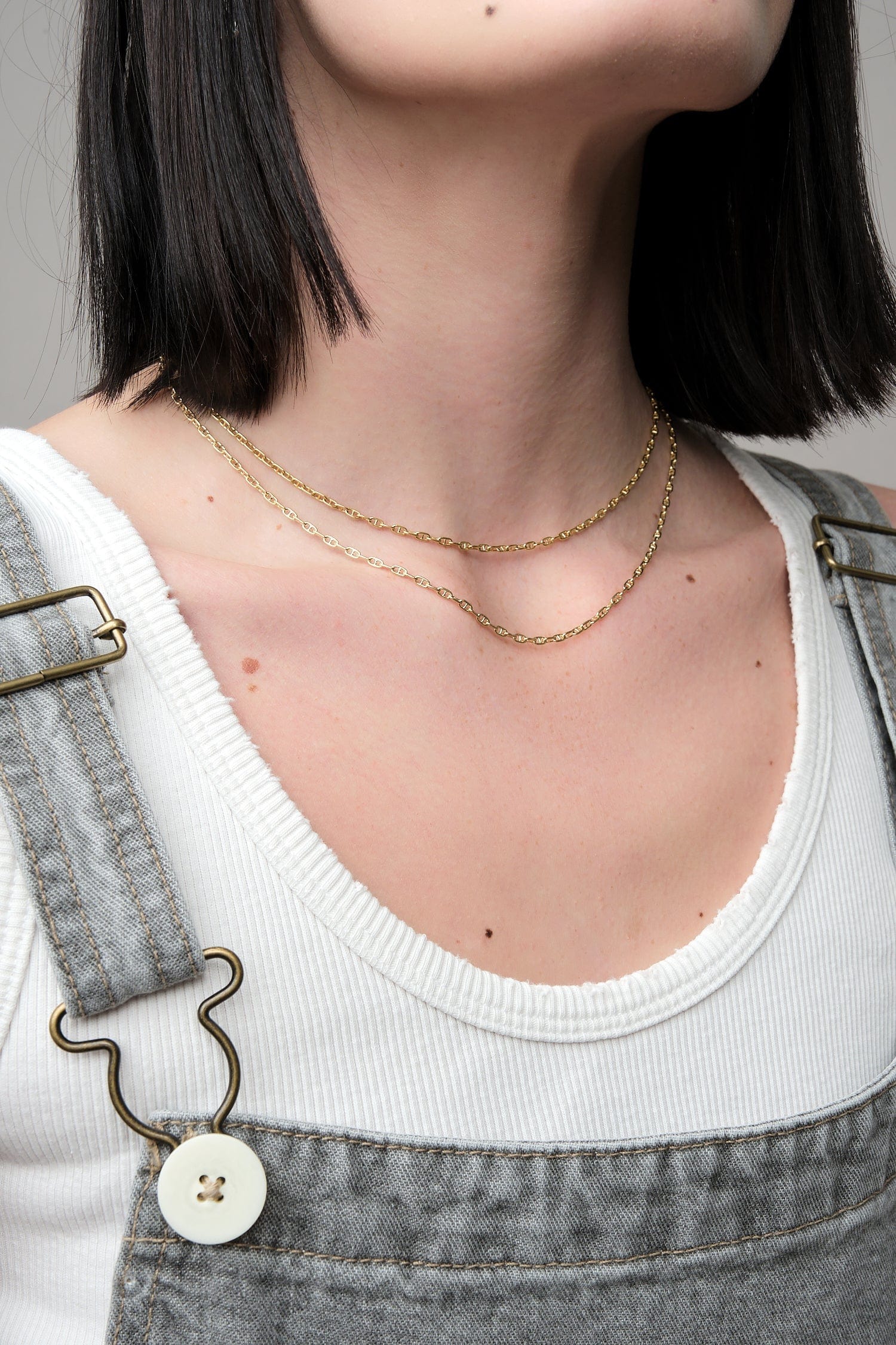This necklace features delicate baby marine links, bringing a subtle beauty to any outfit. It can be worn alone for a stylish look or layered with other pieces. The chain length is 16 inches and it is expertly crafted in Italy.