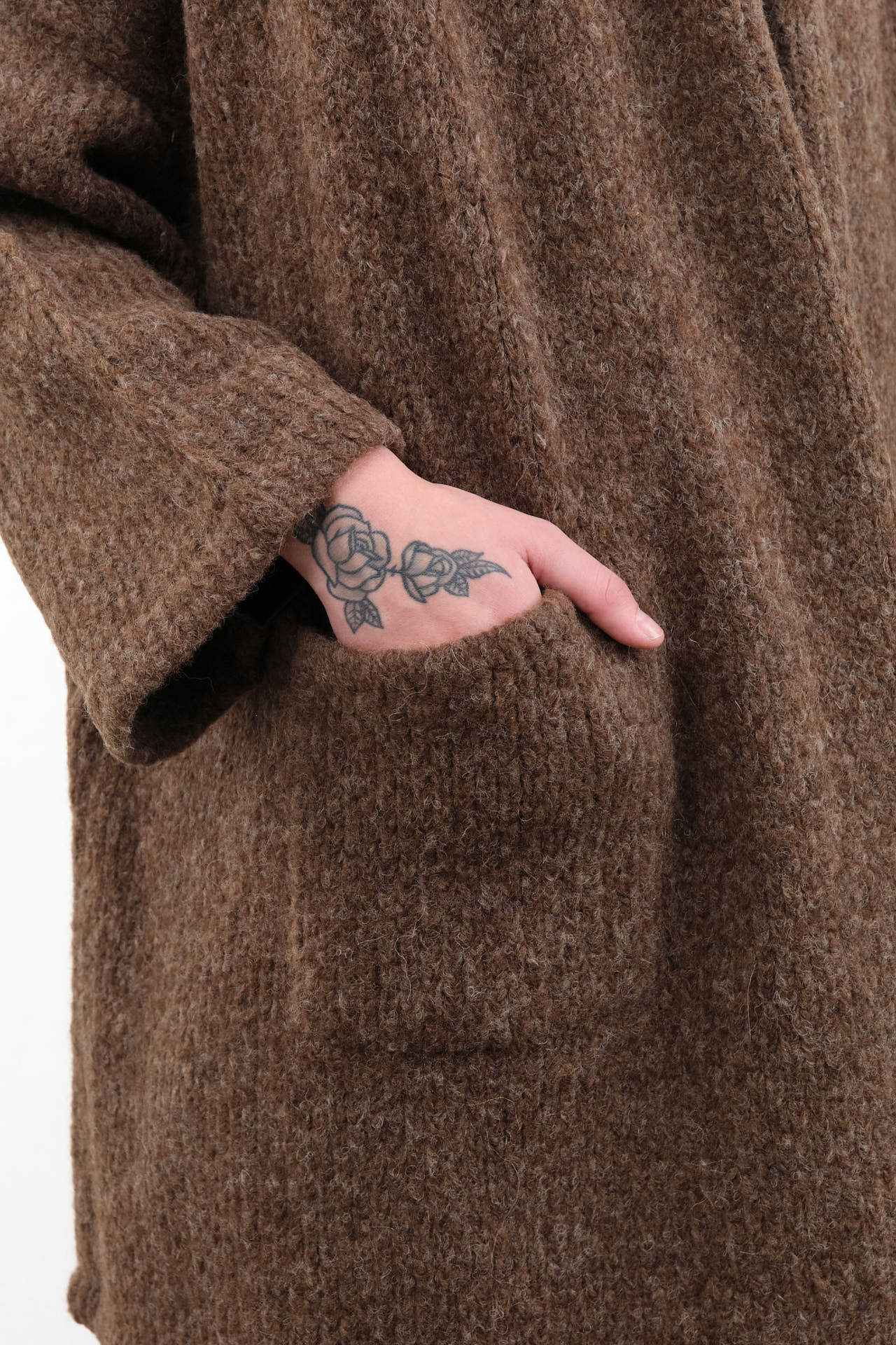 The Haori Coat, thoughtfully made from a luxurious Baby Alpaca and Wool blend, ensures all-day comfort and warmth during chilly days. This oversized, relaxed-fit coat features a stylish cardigan-style open shawl front. With two convenient hip pockets and a hem that gracefully sits just below the hip, the Haori Coat is perfect for effortless layering in various seasons.