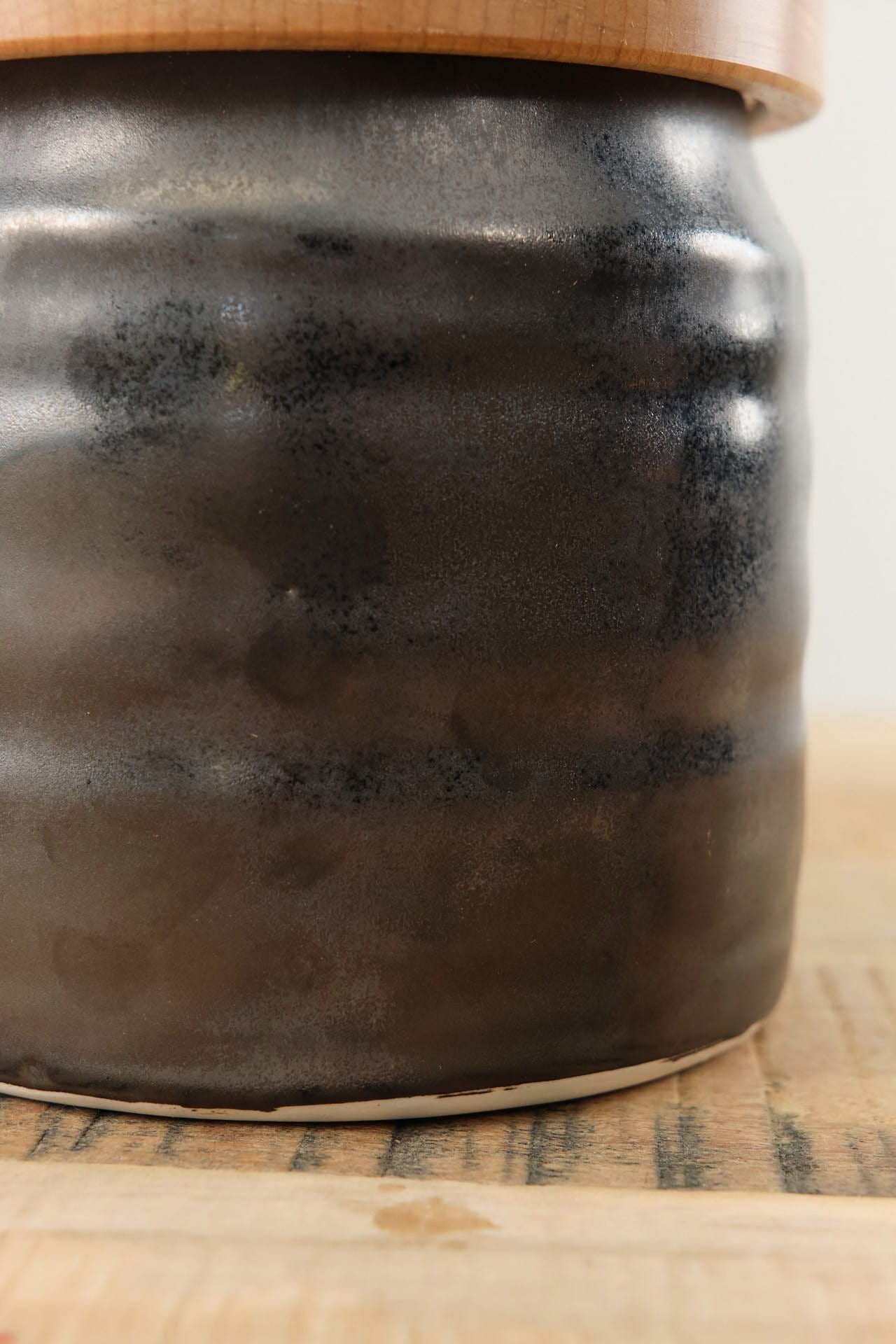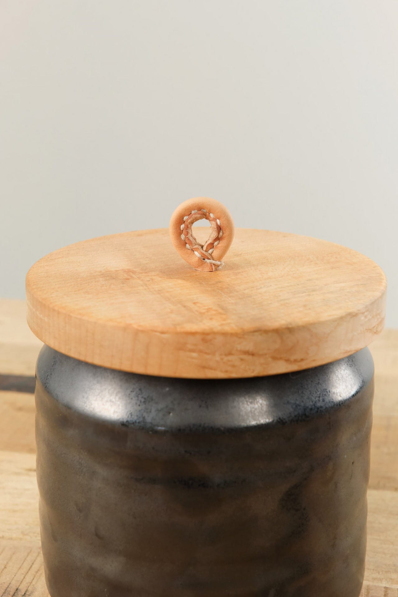 The Bare Lidded Vessels are a stunning blend of functionality and artistry. Made from exquisite porcelain, each vessel is a unique piece, cast from original hand-thrown designs, ensuring a tactile experience that captivates the senses. The hand-turned, figured maple lids, adorned with hand-stitched leather pulls, add a touch of elegance and sophistication. These canisters are not just beautiful; they are durable and will withstand the test of time, making them a timeless addition to your countertop. Perfect for storage or as a decorative statement, the Bare Lidded Vessels are a must-have.