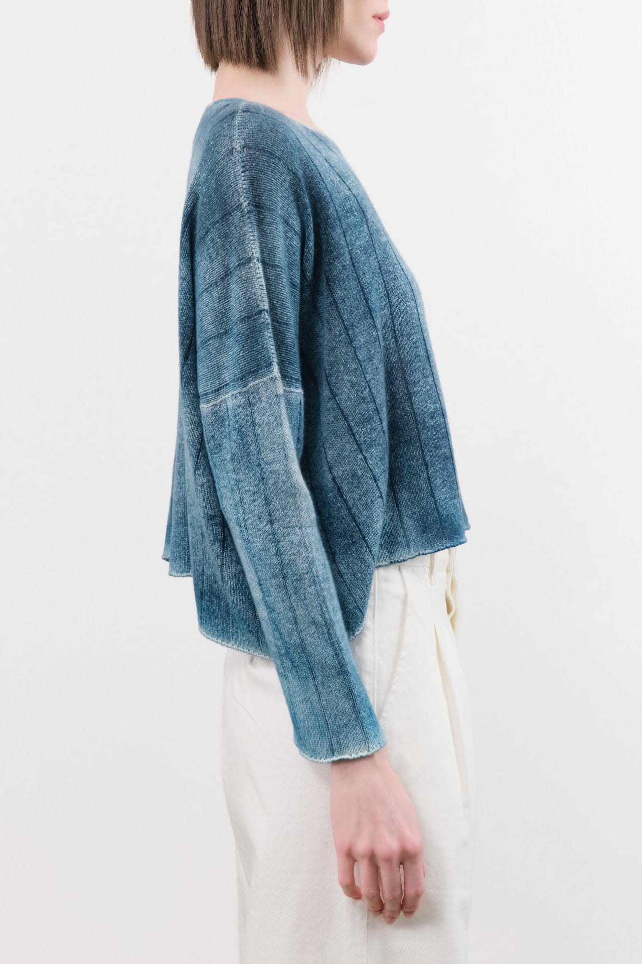 The Eva Lightweight Cashmere Pullover is a thoughtful blend of comfort and style. Made from luxurious cashmere, this sweater features a delicate blue dye and a chic stripe design that adds a touch of sophistication to any outfit. The wide boatneck and drop shoulder create a relaxed silhouette, while the contrast stitch trims provide a refined finish.