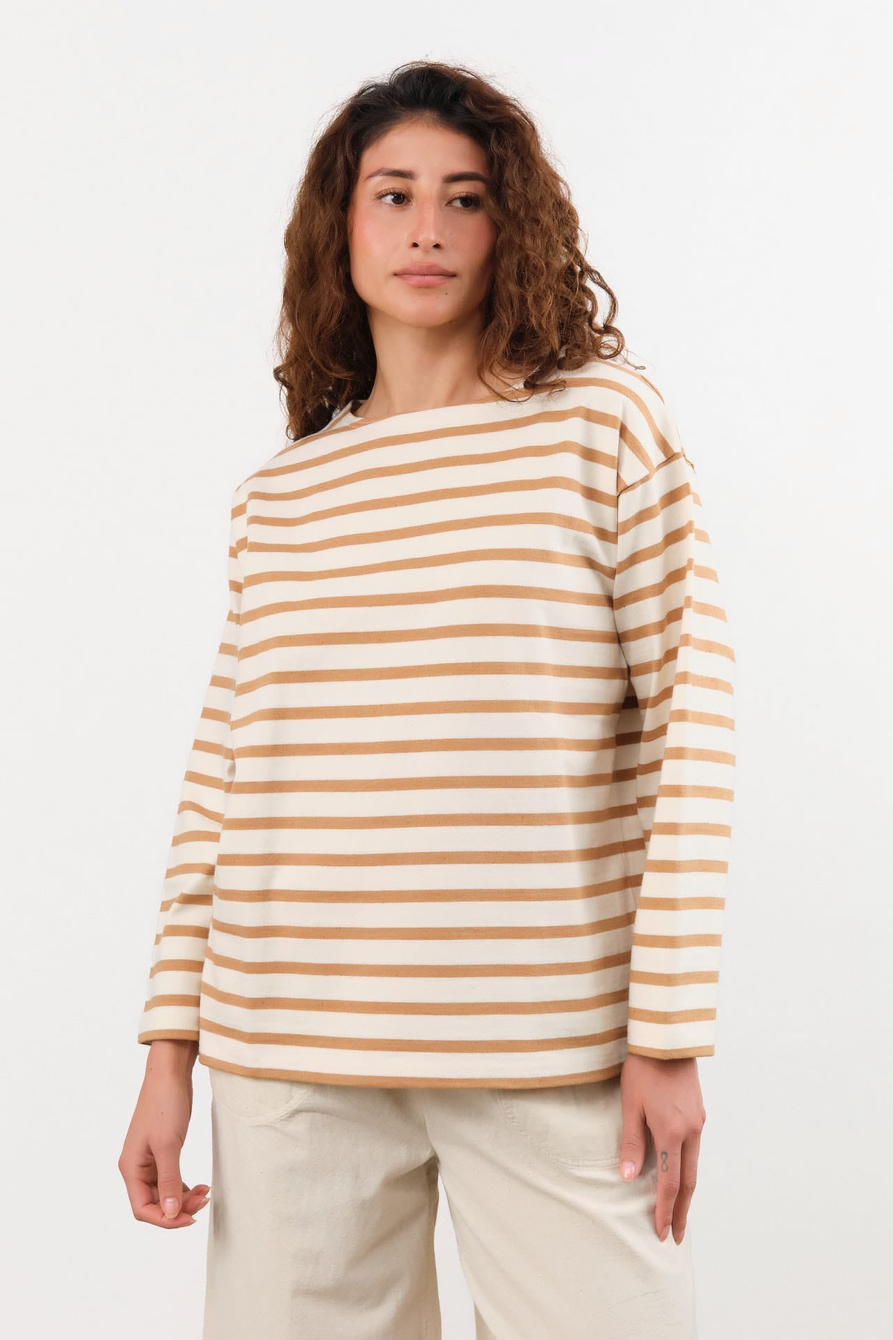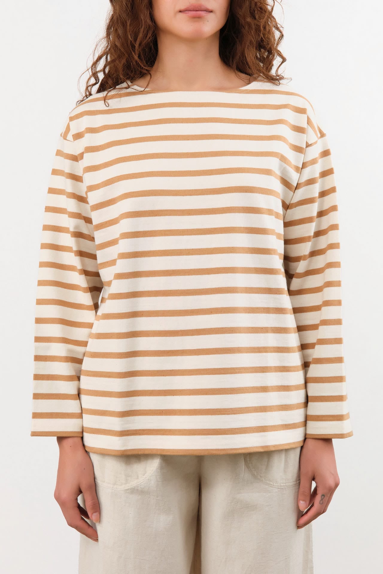 The Undyed Stripe Pullover is a versatile cotton top designed for comfort and style. Featuring a relaxed drop shoulder and a wide neckline, this pullover offers a laid-back fit that flatters all body types. The classic stripe design adds a touch of sophistication, while the straight bottom hem ensures a polished look. Perfect for layering or wearing on its own, this pullover is an essential addition to your collection.