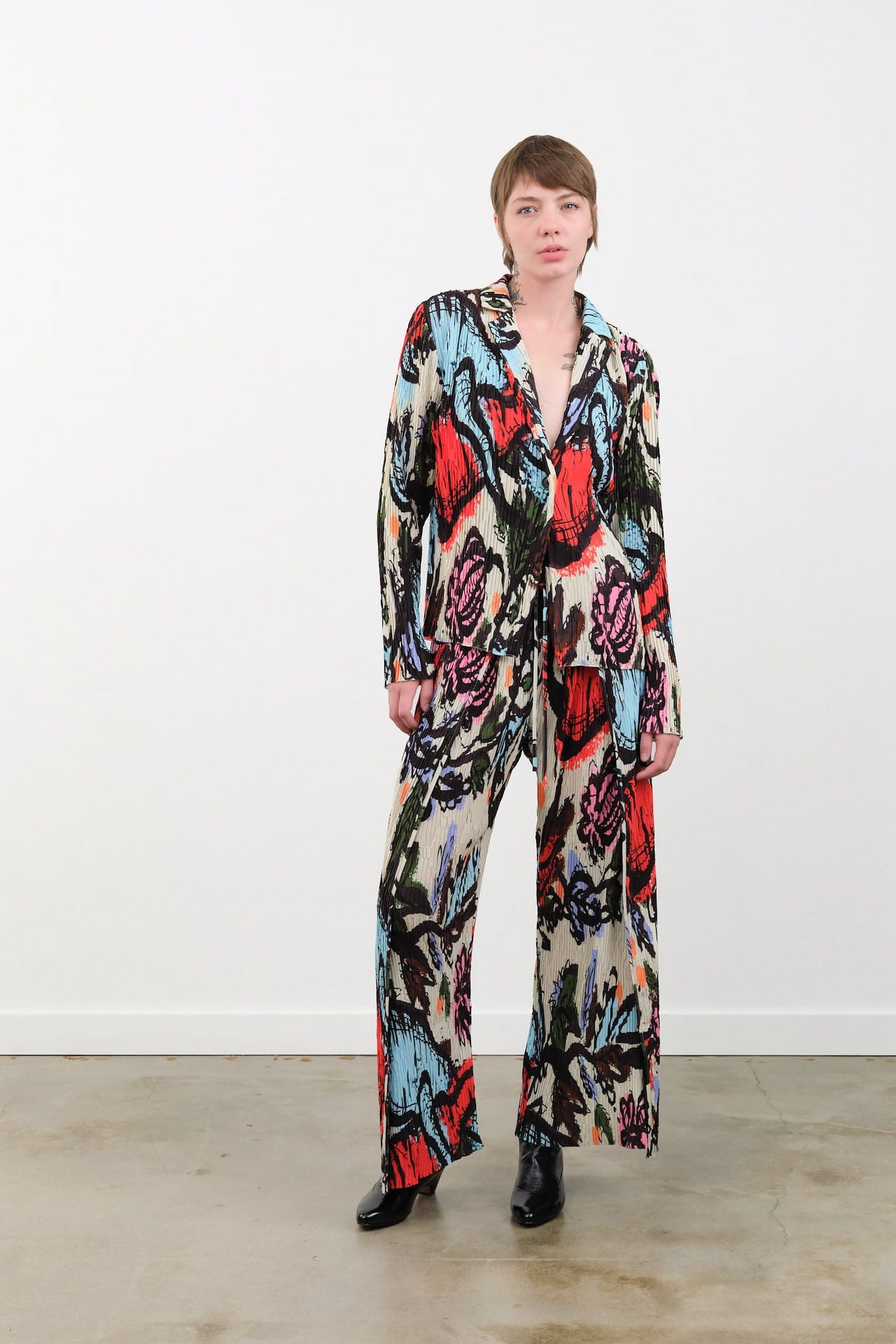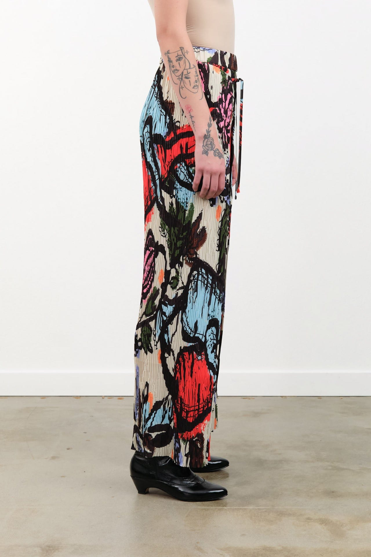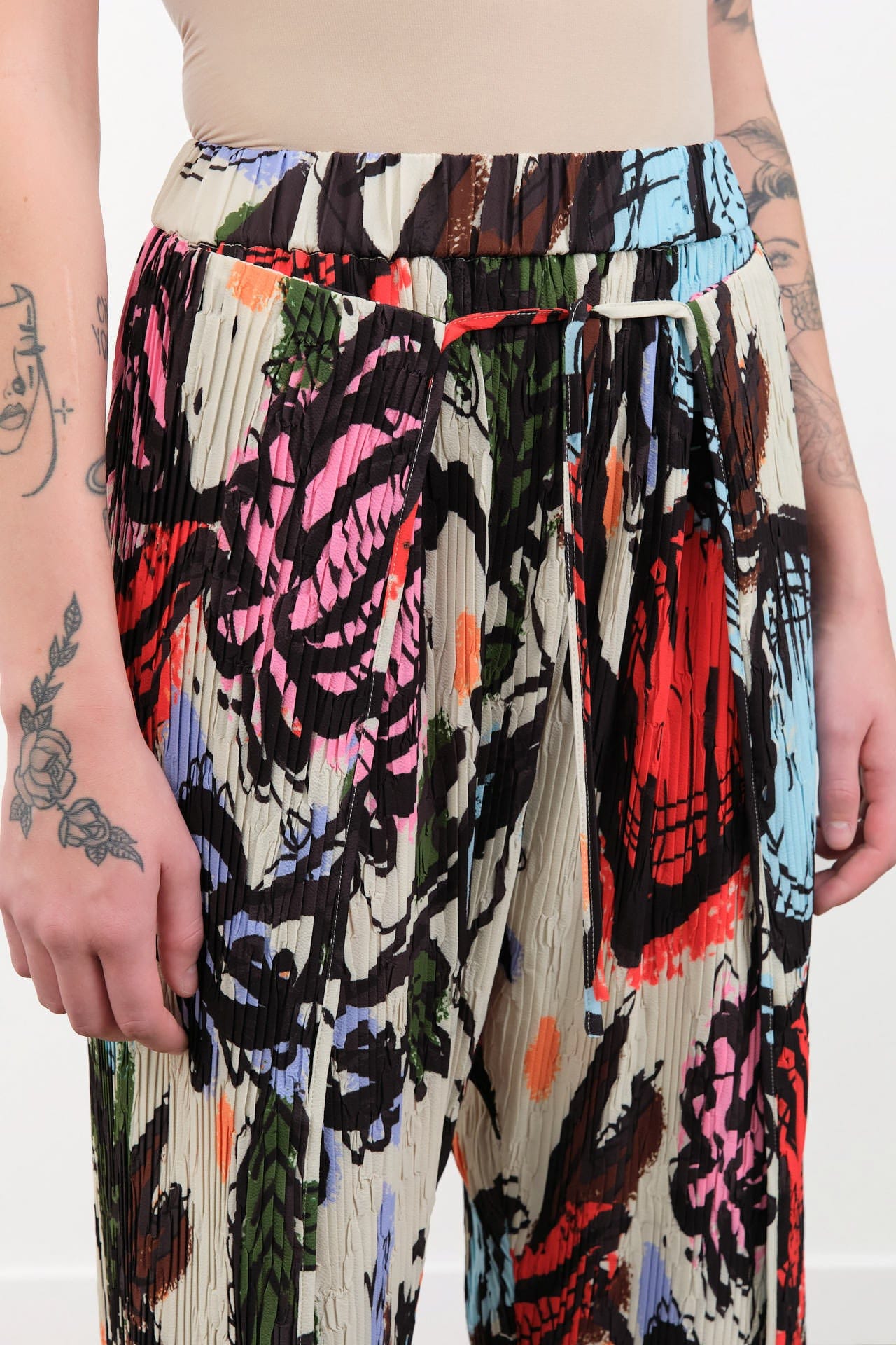 The Fold Plisse Pants are flowy straight-leg pants that feature an elasticated waistband with a drawstring for a customizable fit, complemented by a chic wrap front detail. Adorned with a unique root vegetables illustration, the plissé texture adds a touch of sophistication, making these pants perfect for any occasion. Elevate your wardrobe with this versatile piece that seamlessly blends fashion and functionality.
