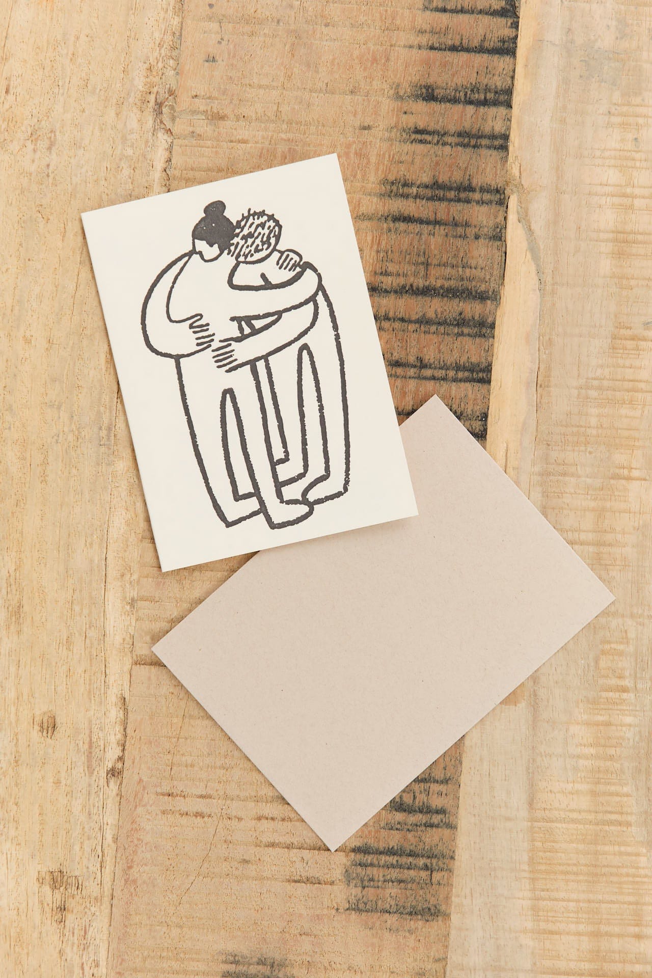 The Huggers Card features a charming design on the front with a blank interior, perfect for personalizing a message for any loved one. Share your love and appreciation with this unique and customizable card. Envelope color may vary.