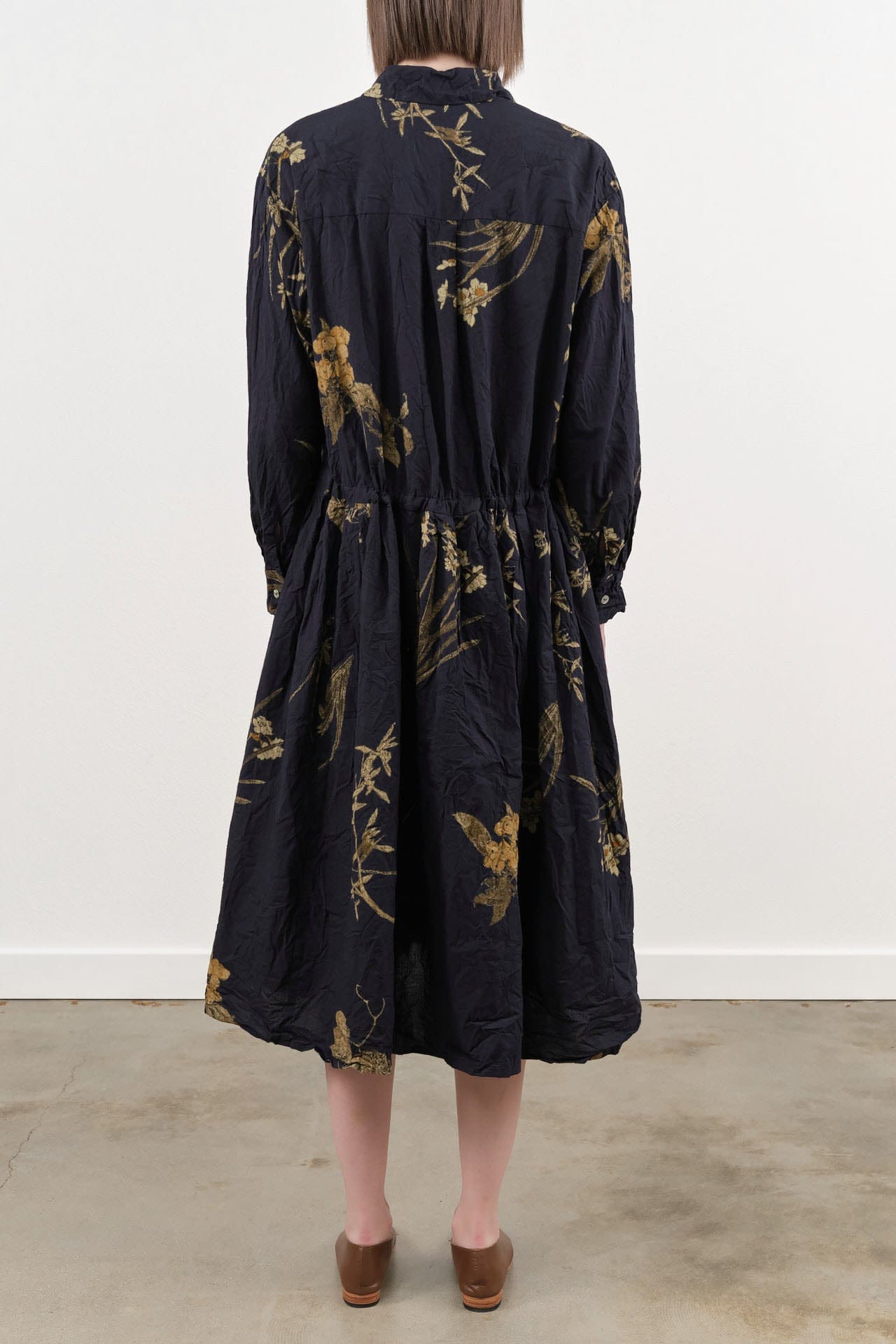 The Japonism Flower Print Dress is an elegant midi-length piece made from lightweight cotton. This dress features a captivating floral print that adds a touch of nature-inspired beauty to your wardrobe. Designed for comfort and style, it includes an internal string for a customizable fit, two convenient pockets for practicality, button cuffs for a refined finish, and a chic foldover collar. Perfect for any occasion, this dress is an elevated find.