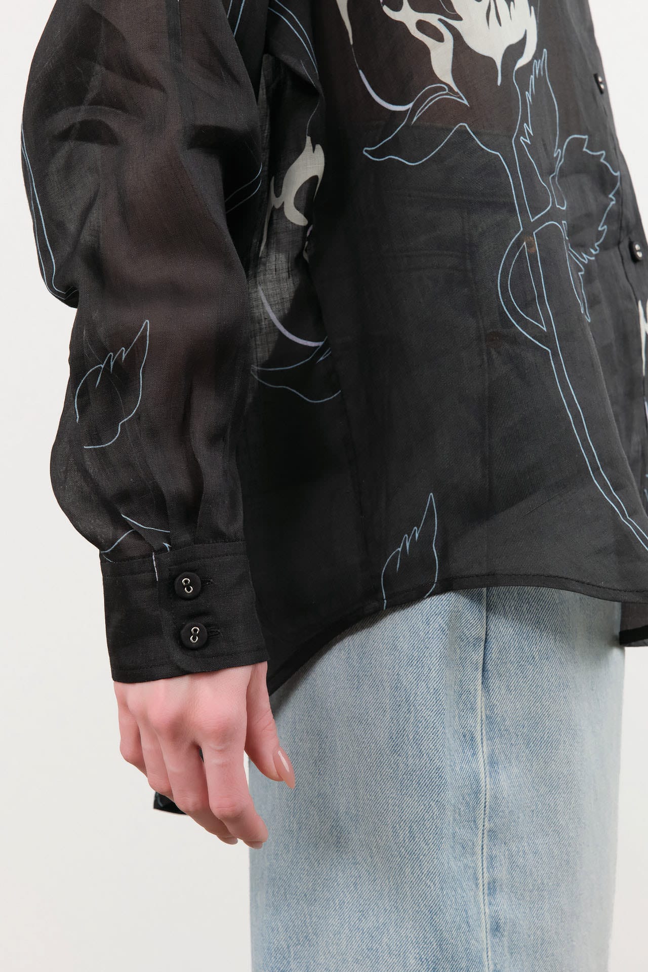 The Risa Top is a luxurious oversized button-down shirt designed with a menswear-inspired aesthetic, featuring a classic pointed collar. Made from washed silk habotai, it offers an exceptionally soft texture and a contemporary oversized silhouette, making it a versatile addition to any wardrobe. This shirt seamlessly blends comfort and style, embodying the perfect combination of elegance and casual chic.