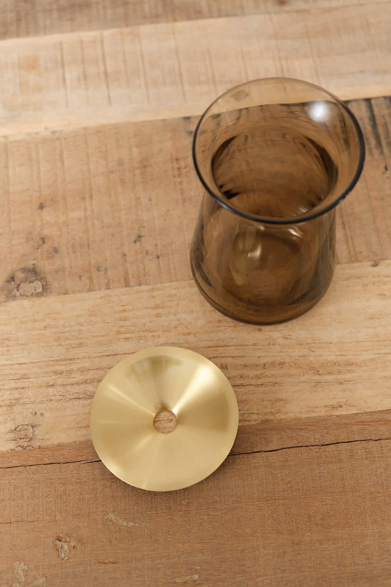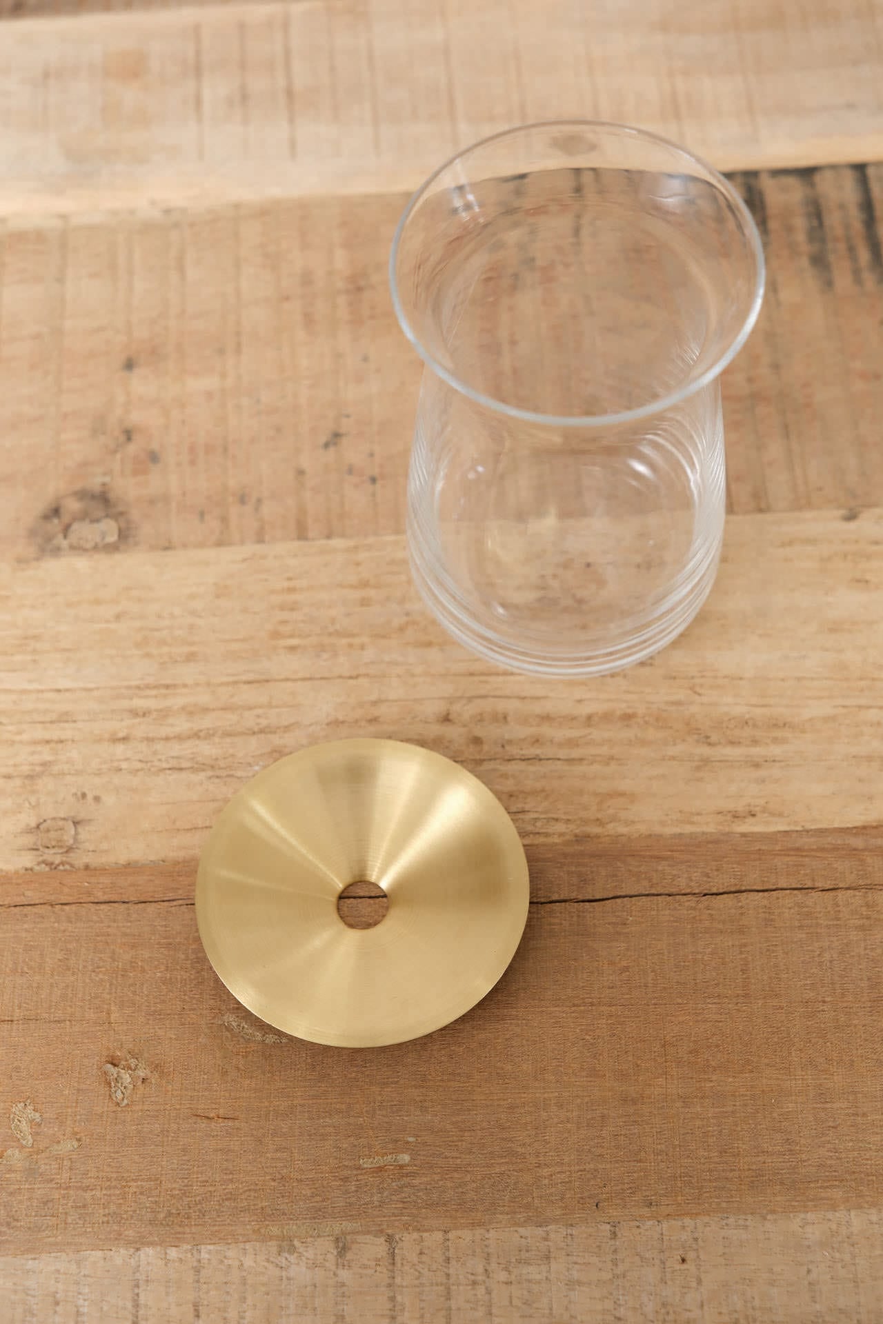 Designed with a brass plate for an elegant touch, this large Luna vase is perfect for displaying a single flower. The reflective quality of the plate is reminiscent of moonlight and provides support for propagations and hydroponic growing succulents. Crafted in Japan, this vase is a versatile addition to any home.