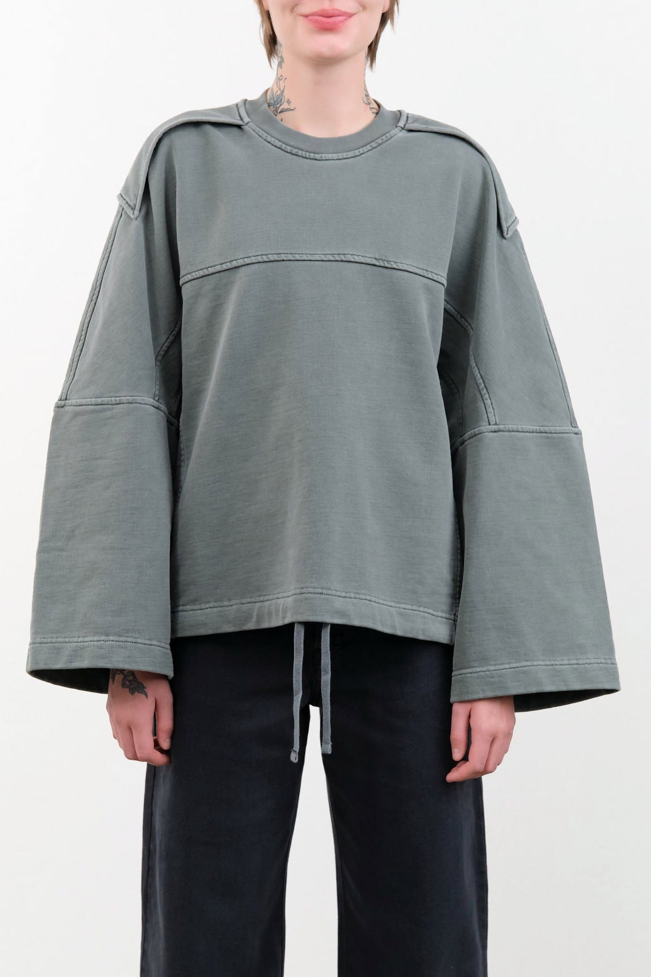 The Tahora Sweatshirt is made from pure cotton for everyday comfort and breathability. It is an ultra-modern piece that features long, wide sleeves and distinctive shoulder epaulette details, adding a touch of refinement to your casual look. The crewneck design and drop shoulder cut create a relaxed yet feminine silhouette.