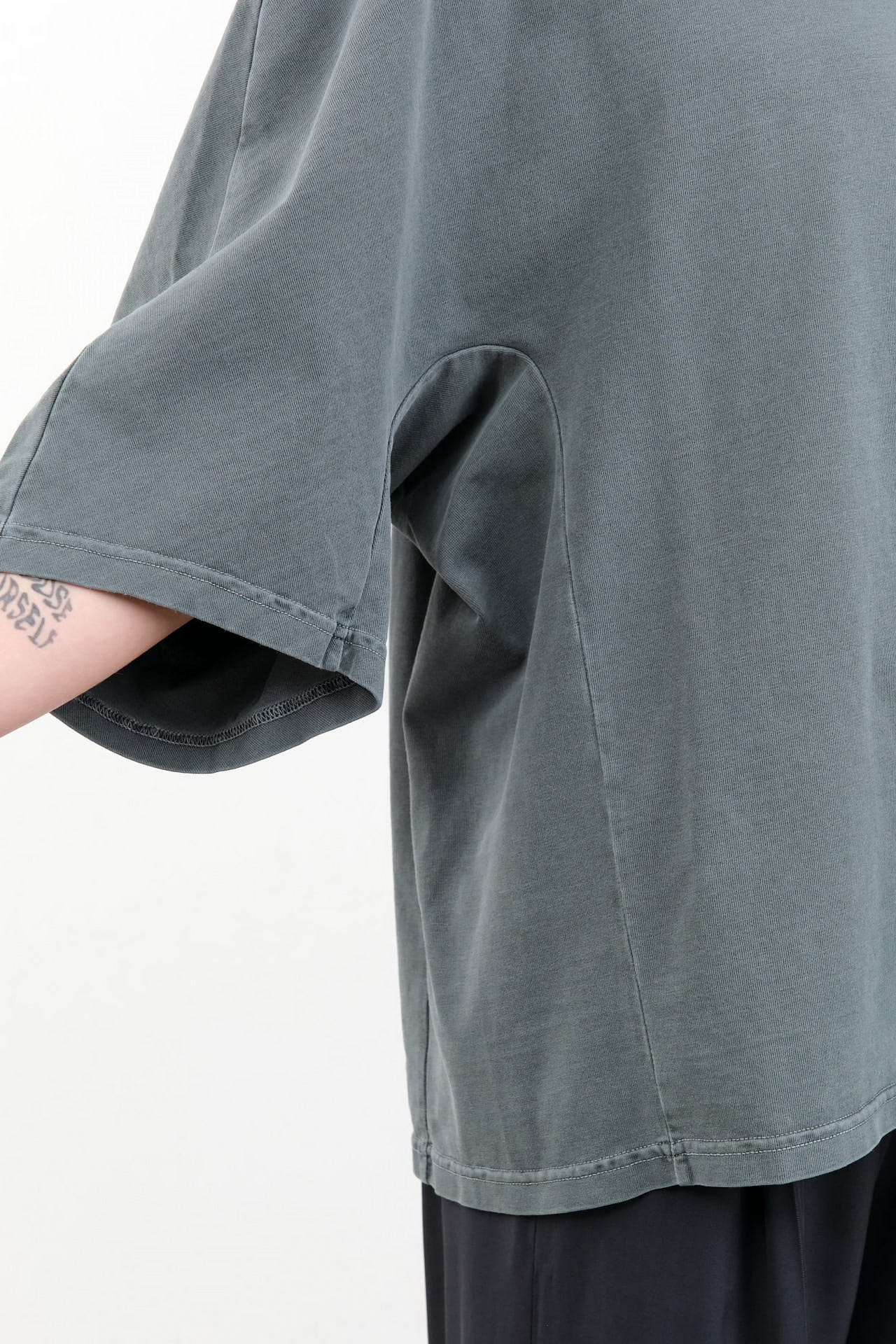 The Tiria T-Shirt is a sophisticated blend of comfort and style. Made from crisp cotton jersey, this t-shirt features a generous boxy silhouette, dropped shoulders, and wide short sleeves, ensuring a relaxed yet polished look. The high mock neckline adds a touch of elegance, while the minimalist design allows for versatile styling.