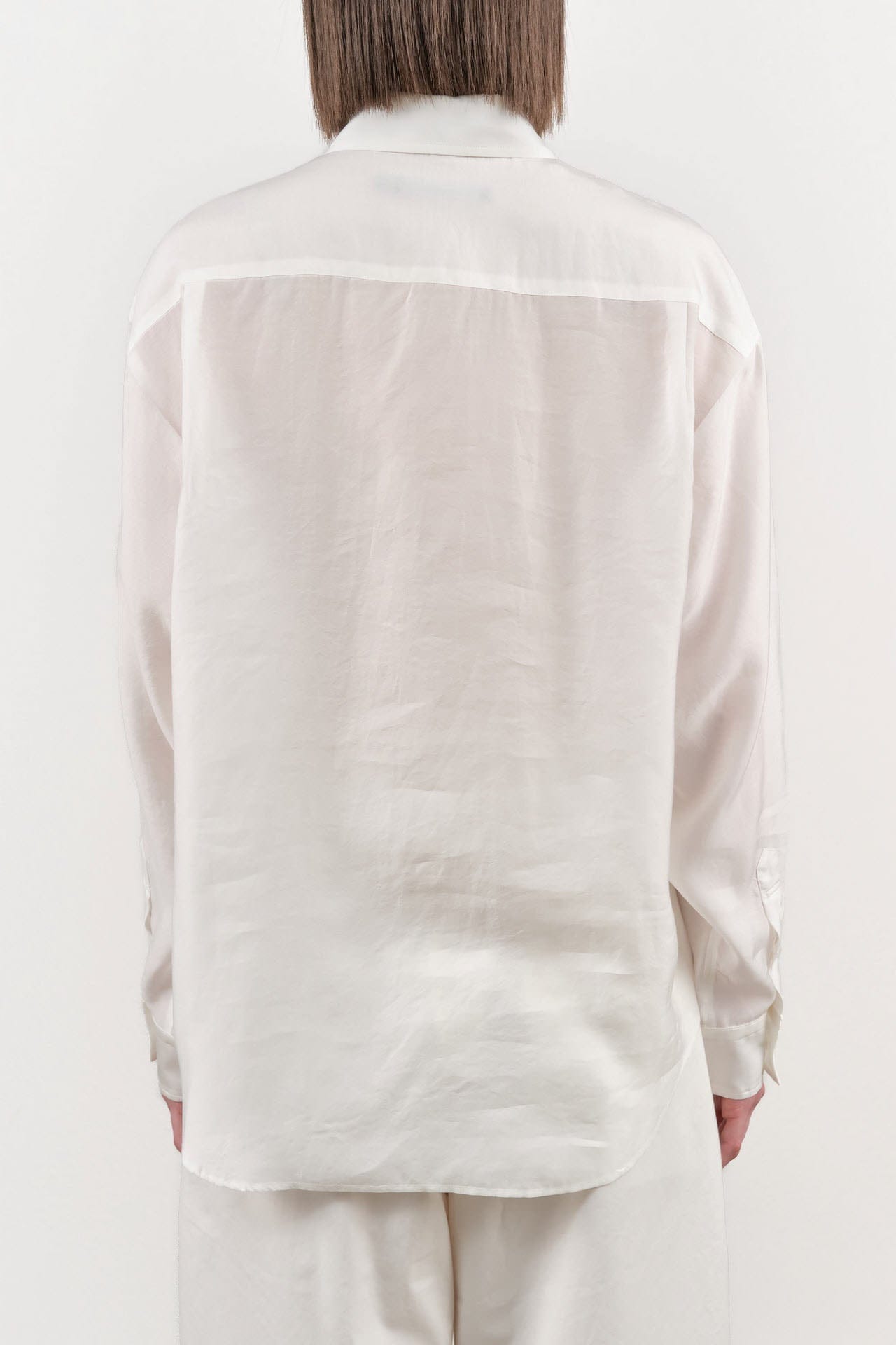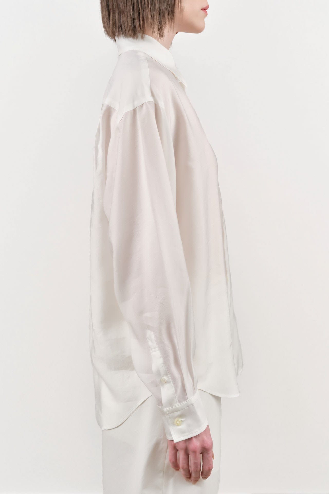 The Silk Clea Top is a timeless button-up blouse designed for a sophisticated yet relaxed look. Made from a luxurious silk blend, this blouse features a button-up front, elegant button cuffs, and a classic foldover point collar, ensuring a polished appearance for any occasion. The curved bottom hem and single chest pocket add a touch of femininity and practicality, making it the perfect choice for both professional settings and casual outings.