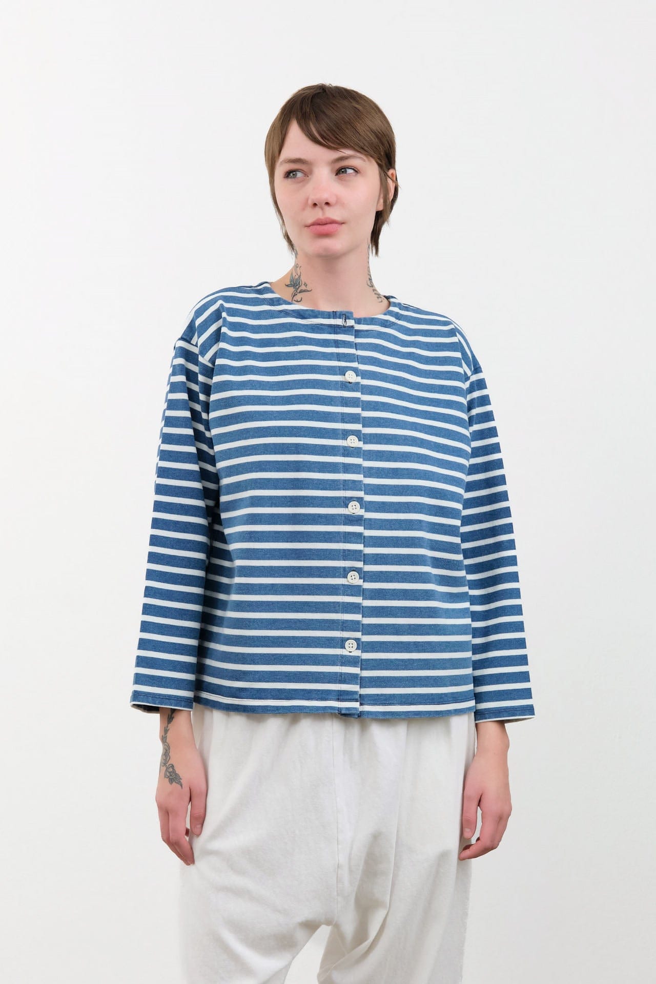 Ichi Antiquities Apparel Womens Blouses Stripe Cardigan in Blue Blue x White / One Size