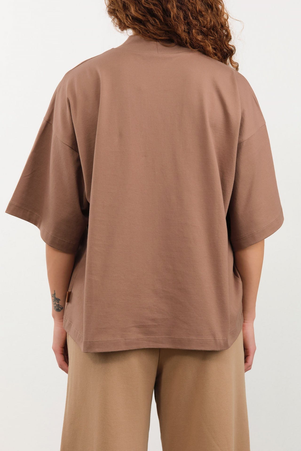 The Pitch Tee is a sophisticated take on a classic essential. Made from premium Japanese jersey, this boxy tee features a unique pitched elbow-length sleeve and a stylish mock neck, offering a modern silhouette that drapes beautifully while maintaining a relaxed vibe. The drop shoulder design enhances comfort and ease of movement, making it the perfect choice for casual outings or more polished looks.