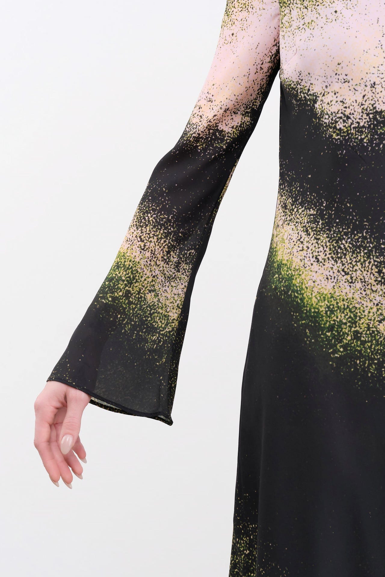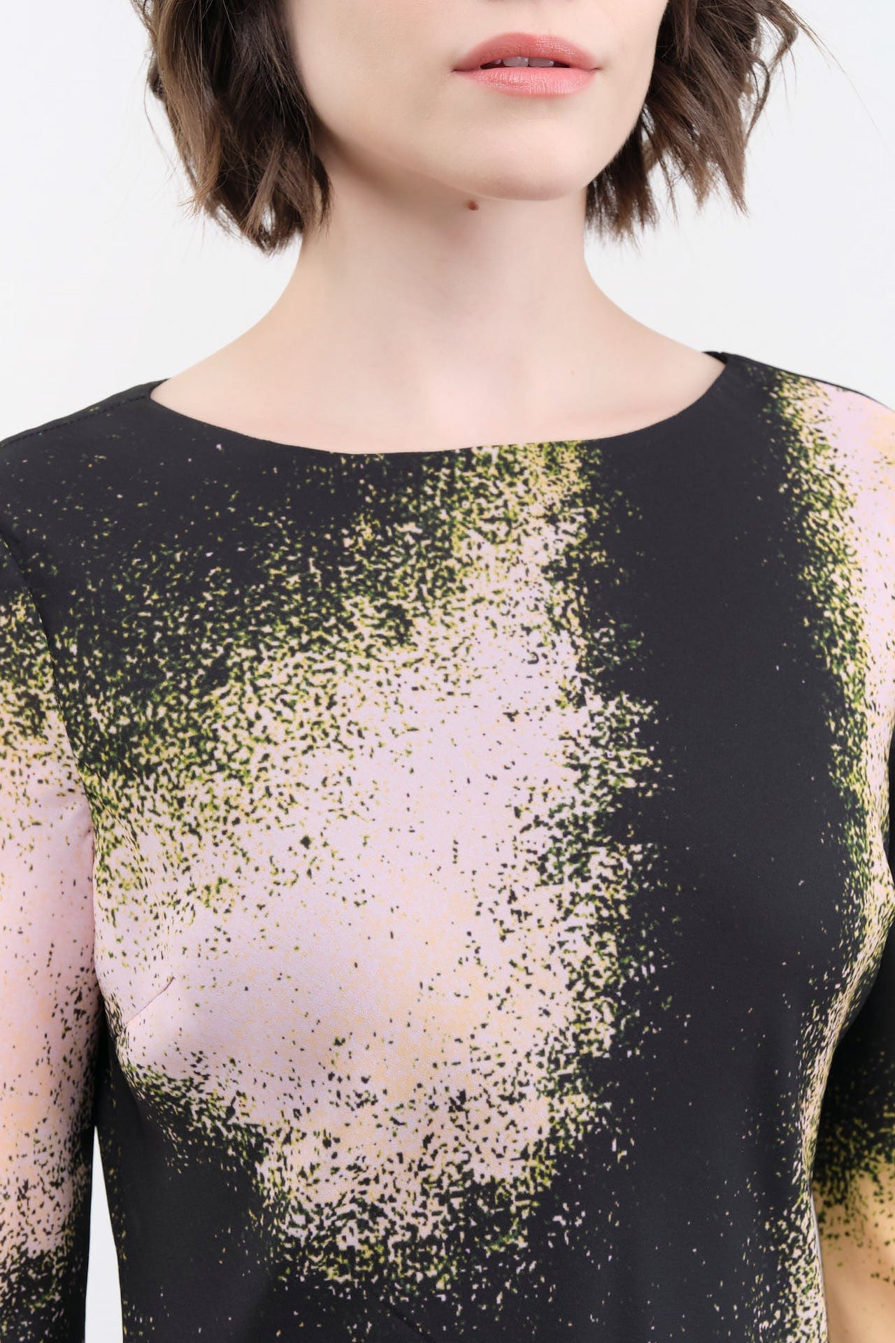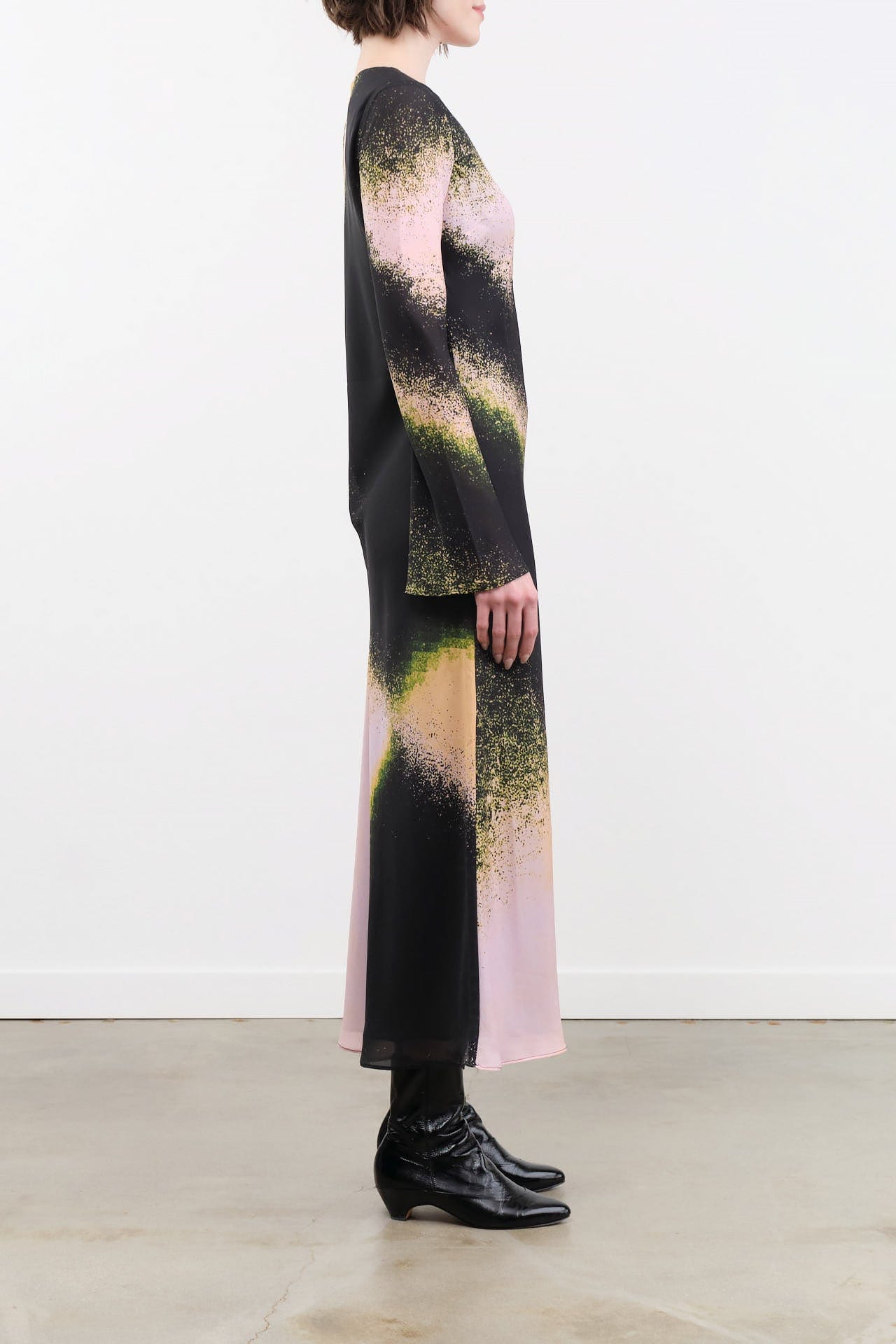 The Sacha Dress is a long-sleeve shift dress, designed with an abstract printed blend. This mid-length dress features a flattering A-line skirt that gracefully drapes for a sophisticated silhouette. The wide neckline adds a touch of modernity, making it perfect for both casual outings and formal occasions.