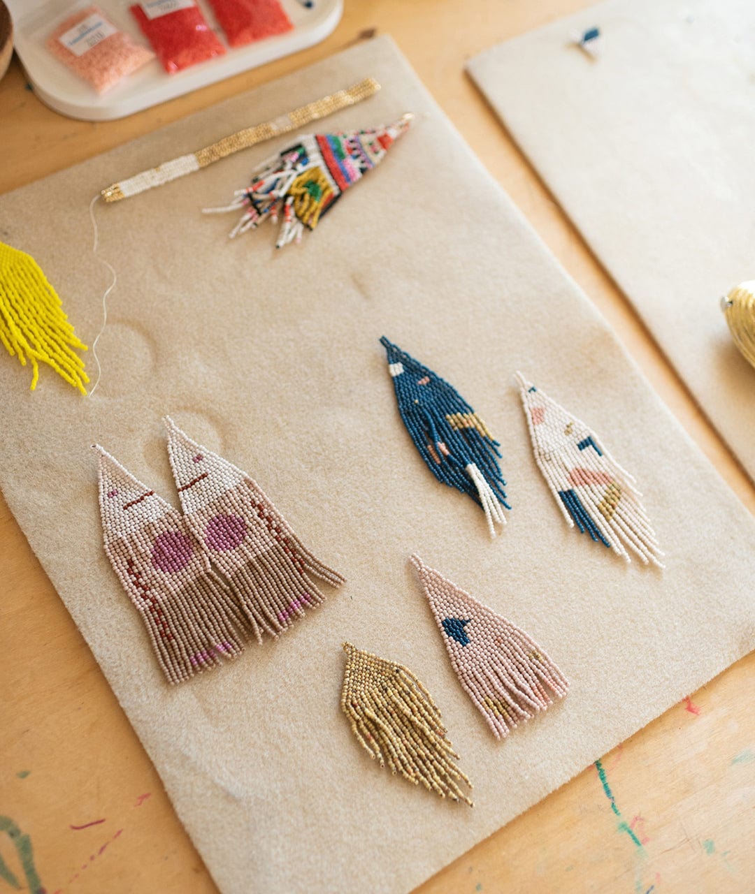 Salihah Moore is an artist and designer of hand beaded jewelry based in Boulder, Colorado. Inspired by textiles and contemporary design, most of her creations form naturally from the making process and are not premeditated