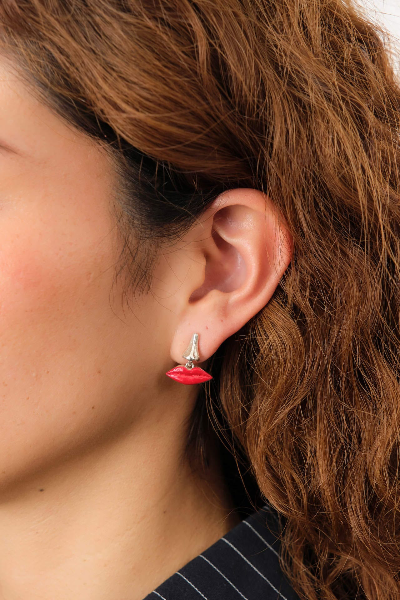 The Claude Earring is a stunning tribute to the visionary female Surrealist artists Claude Cahun and Leonor Fini. Part of the Camera Oscura collection, this unique earring features a playful design of enamel lips in a sly smile, elegantly suspended from a nose; it embodies a whimsical surrealist aesthetic. Handmade in Los Angeles, from high-quality sterling silver, the Claude Earring is not just an accessory; it’s a statement of art and creativity.
