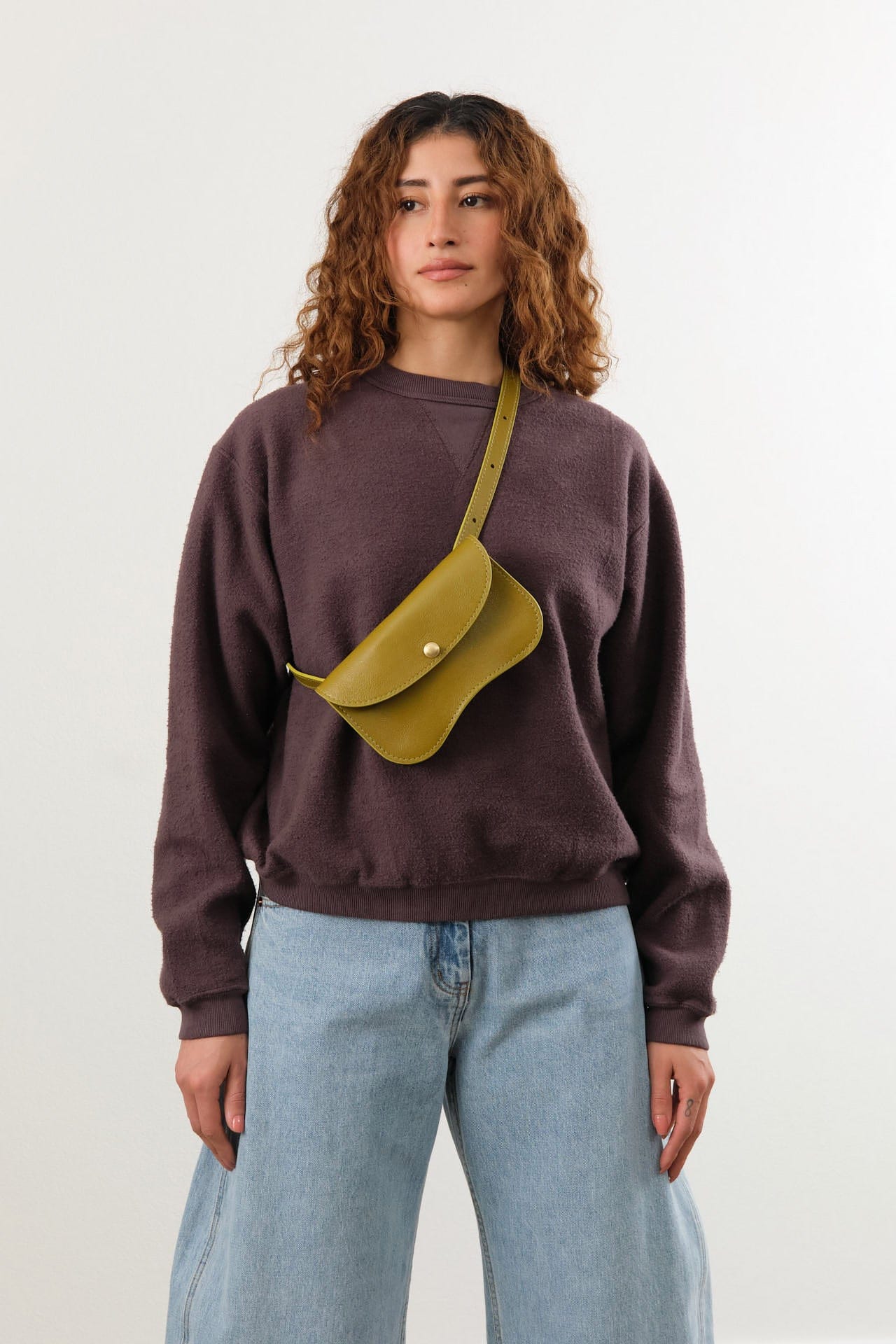 This versatile pouch is designed for everyday use and includes an internal divider and a pocket for credit cards. Wear it as a clutch or use the adjustable strap to carry it across your chest or on your shoulder. The pouch is secured with a stylish brass pinch and pull release closure.