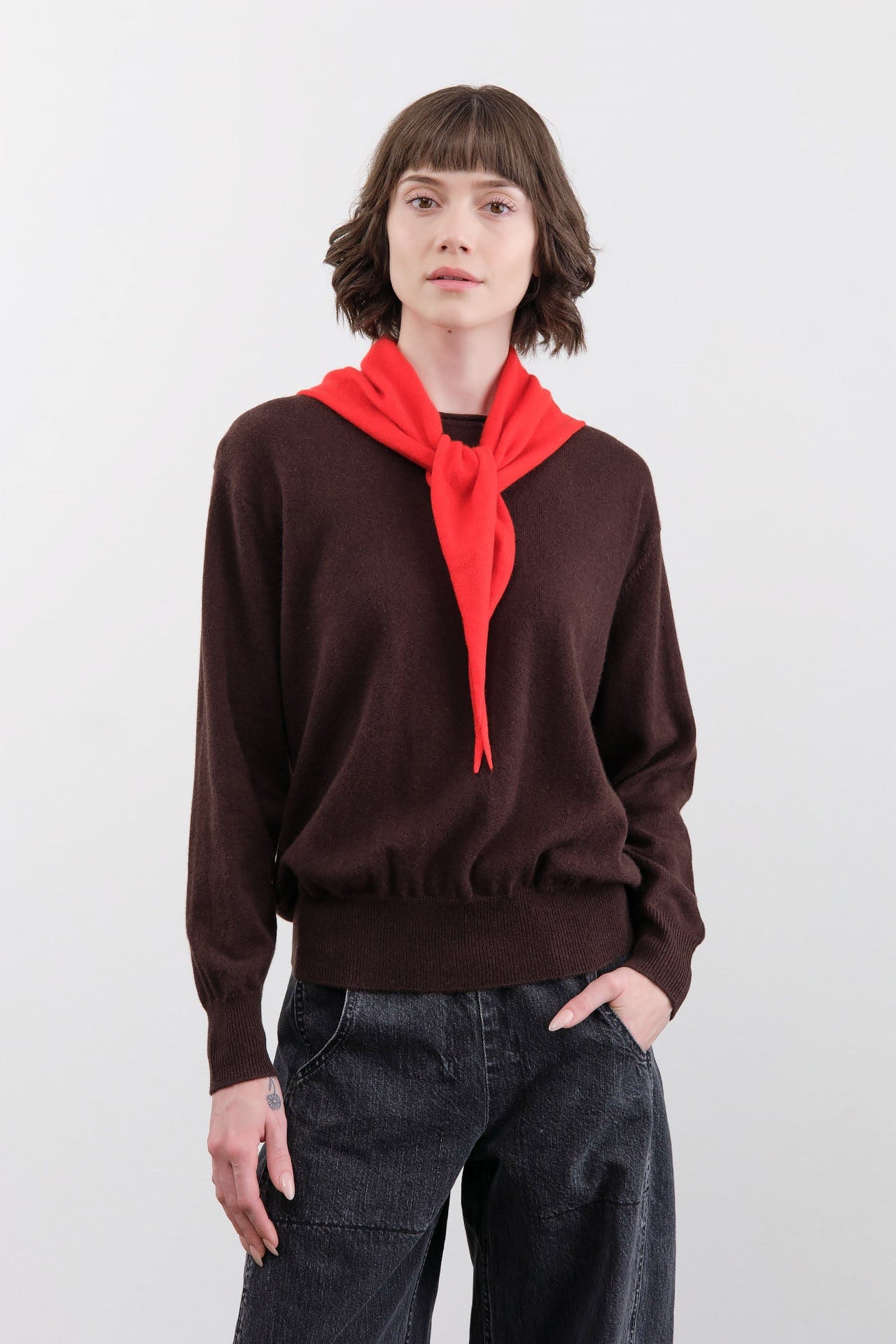Perfect for your autumn wardrobe, the Nessa Small Bandana is a luxurious knitted cashmere scarf that combines warmth and style. Made from the finest cashmere, this bandana offers an irresistibly soft touch, making it the perfect accessory for layering or adding a chic flair to any outfit. Embrace the season with this versatile piece that effortlessly enhances your look while keeping you cozy.