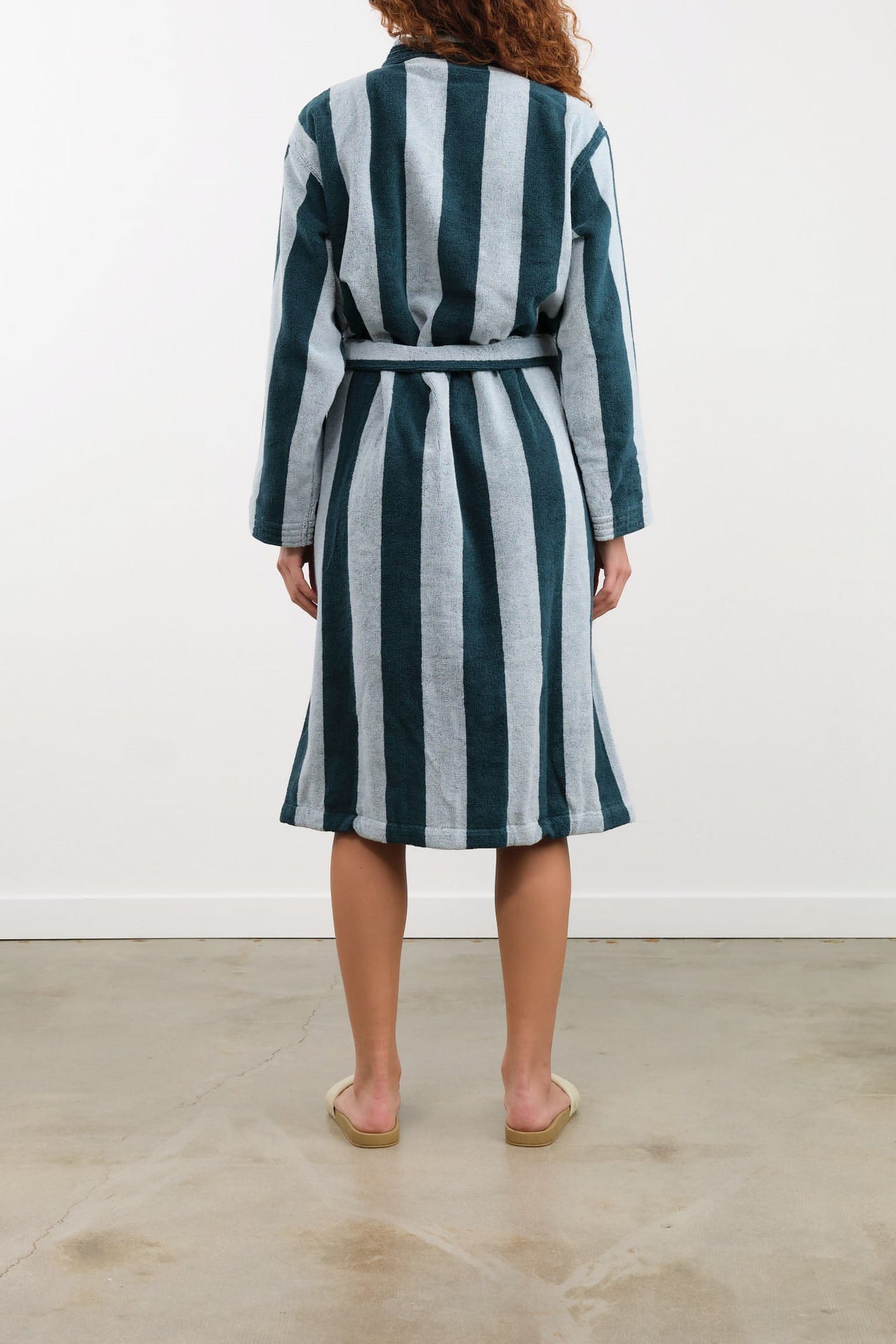 Simple Striped Terry Bathrobe in Sky/Peacock