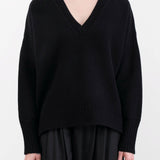 The Aura Top is a V-neck, wool sweater that exudes elegance and femininity. Made with a thick ribbed neckline, this piece adds a touch of intrigue to any ensemble, making it perfect for both casual outings and sophisticated gatherings. Its versatile design allows for effortless styling, ensuring you look chic and polished.