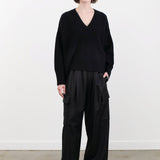 The Clover Pants feature a large elasticated waistband, belt loops, side pockets, two back flap pockets, and cargo pockets. This is a flowy pant that is practical and comfortable for everyday wear, while still keeping a look of being dressed up.