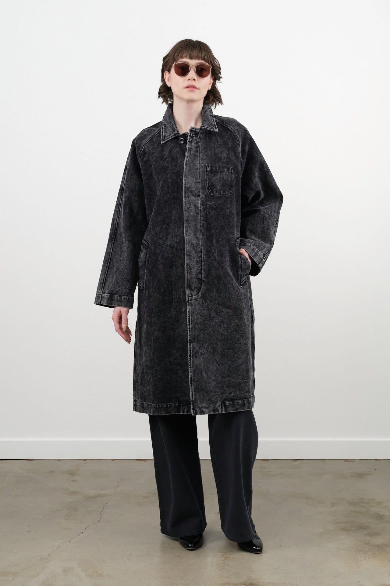 The Fall Duster is a beautifully tailored mid-length coat that combines sophistication with comfort. Featuring a stylish pointed collar and a straight hem, this duster boasts a boxy fit that flatters all body types. The concealed placket offers a sleek finish, while raglan sleeves provide ease of movement. With two front side pockets, it seamlessly blends practicality with elegance, making it the perfect addition to your wardrobe.