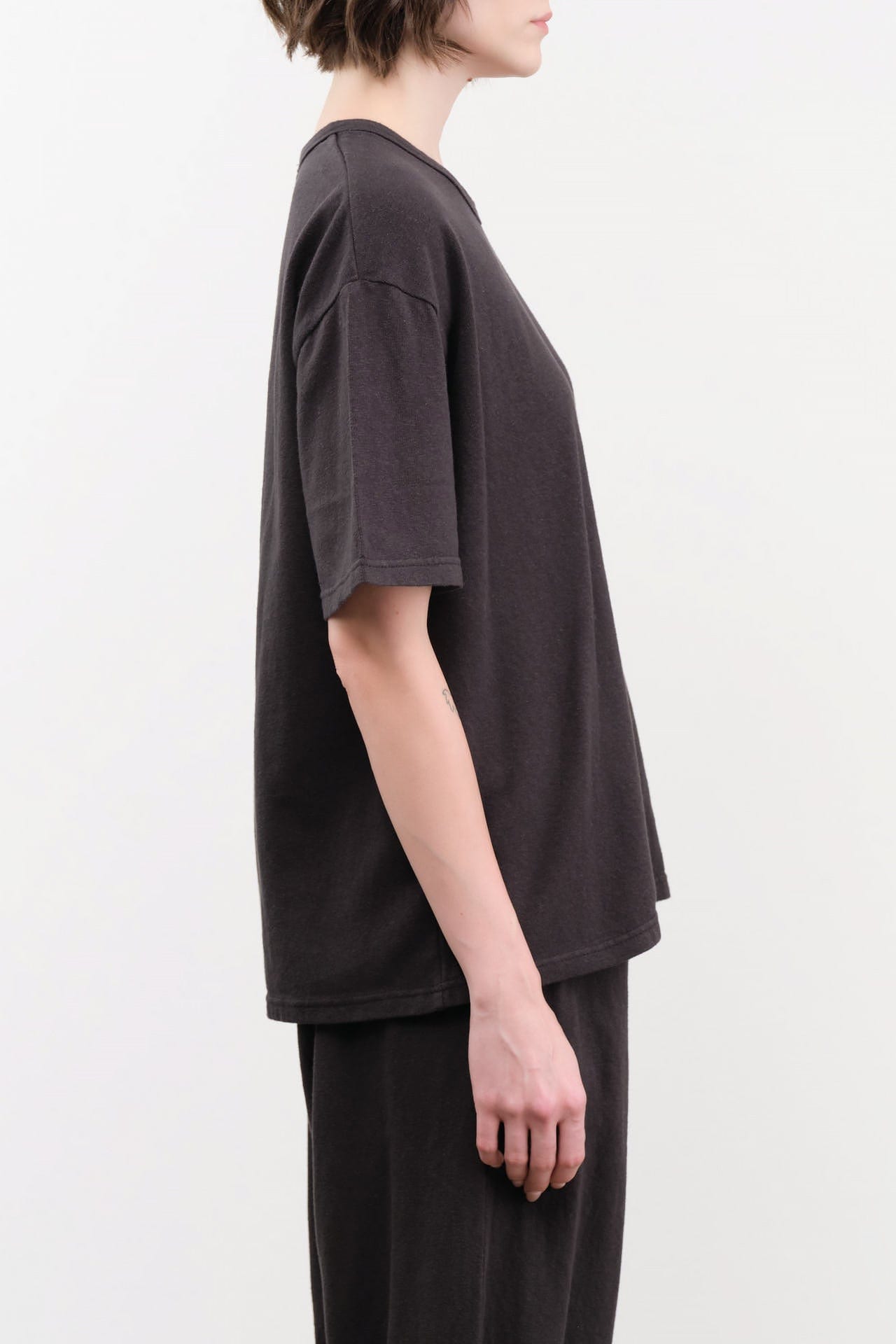 The Cotton T-Shirt is a timeless addition to your everyday wardrobe. Made from soft, breathable cotton blend, this classic short-sleeve crewneck tee features a ribbed knit design that enhances comfort and durability. The modern boxy fit and feminine drop shoulder create a flattering silhouette, making it perfect for any occasion.