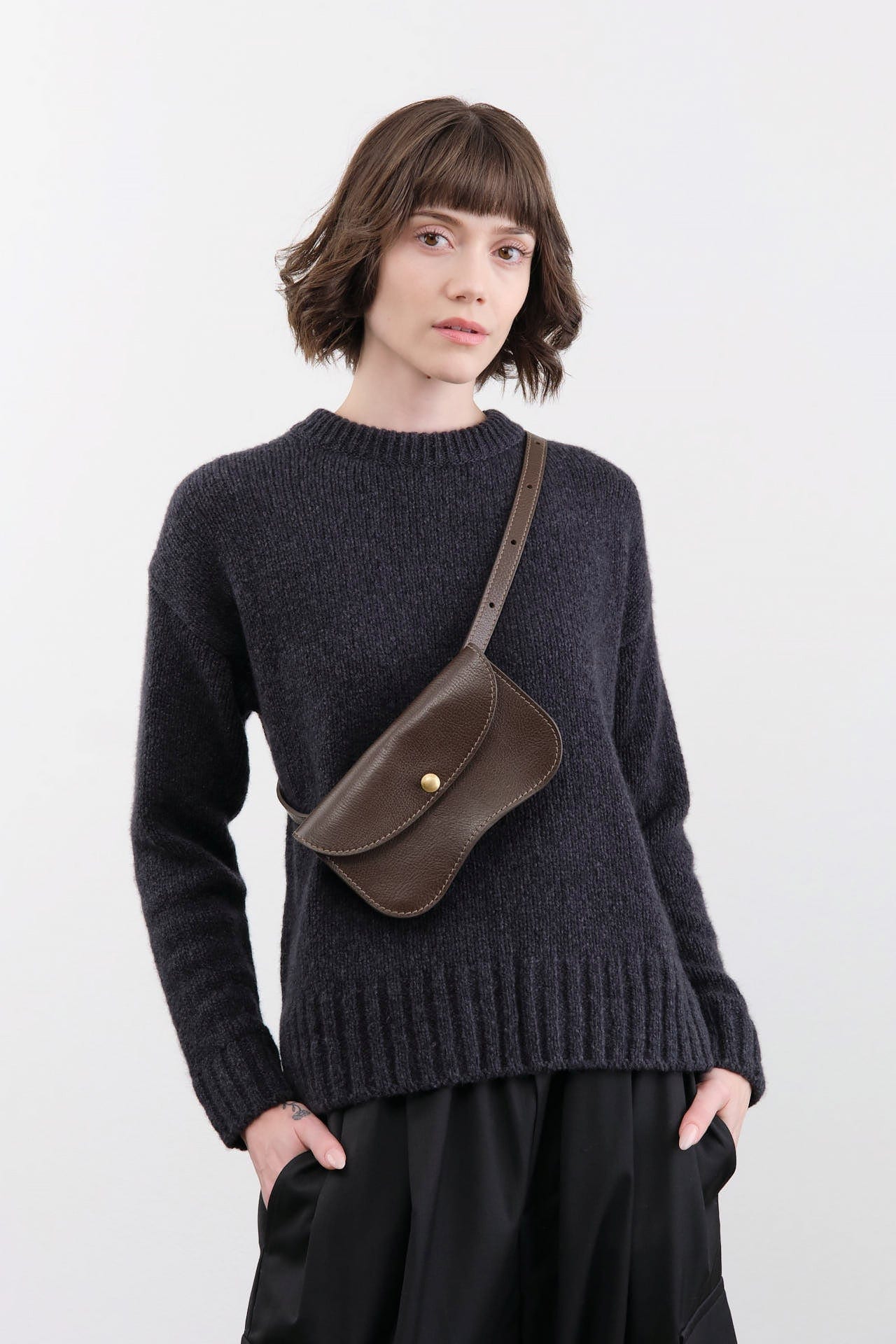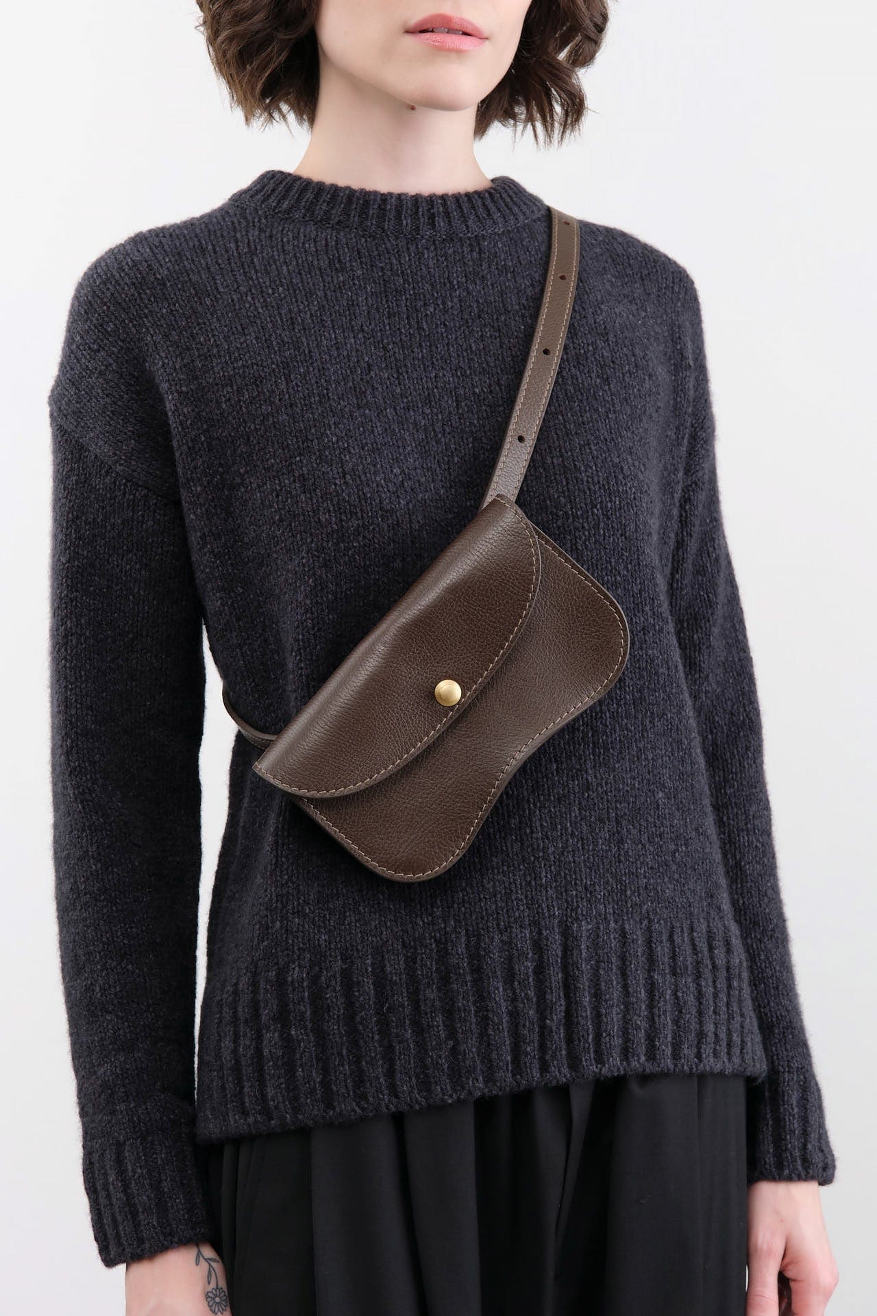 This versatile pouch is designed for everyday use and includes an internal divider and a pocket for credit cards. Wear it as a clutch or use the adjustable strap to carry it across your chest or on your shoulder. The pouch is secured with a stylish brass pinch and pull release closure.
