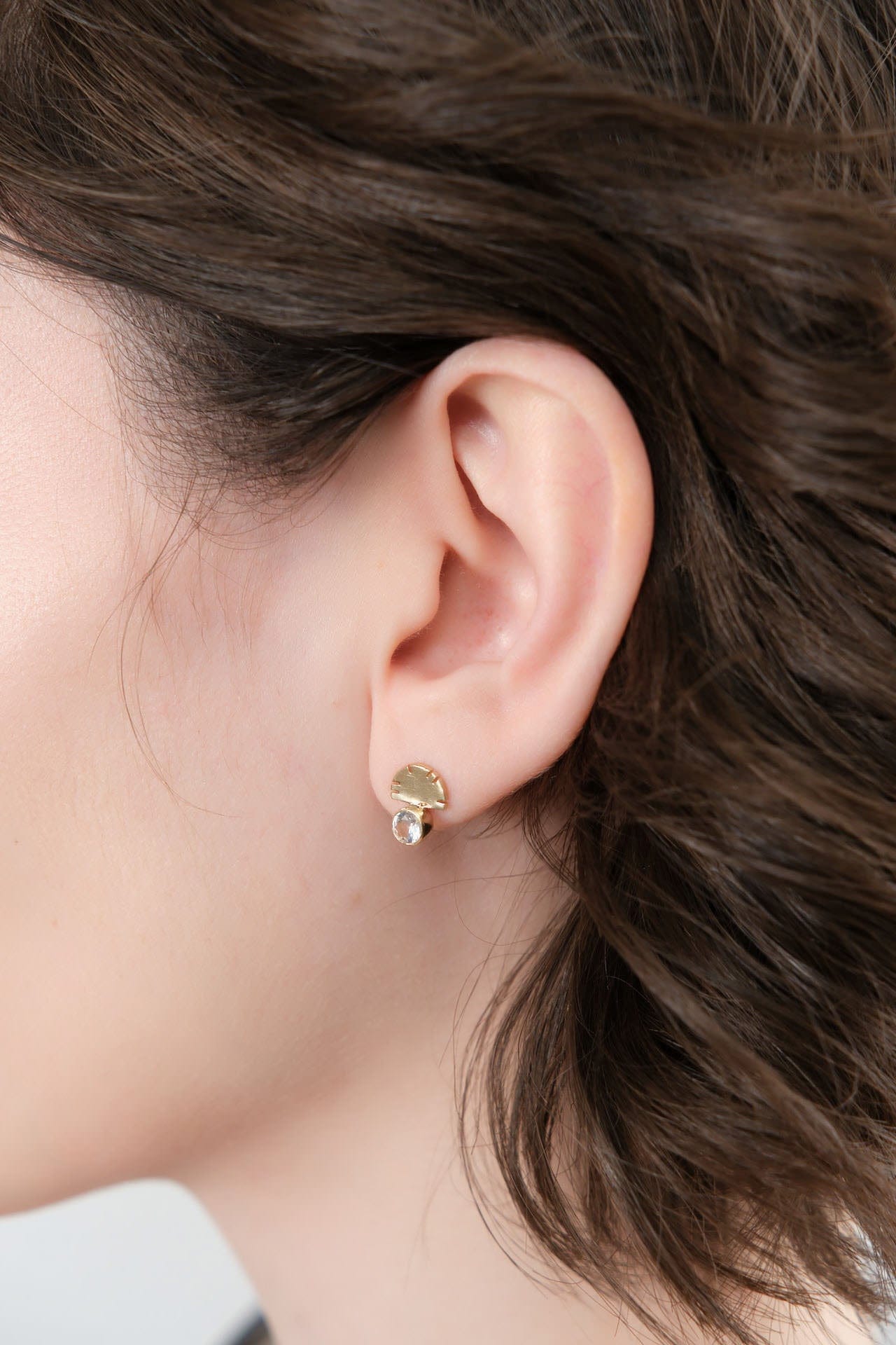 The Colorado White Topaz Aquilla Stud Earrings are a stunning tribute to nature's majesty. Featuring a unique eagle-inspired design, these earrings showcase a feather-textured 14K Yellow Gold half-circle that beautifully frames a sparkling white topaz circle above. Perfect for both everyday wear and special occasions, these earrings add a touch of sophistication and charm to any outfit.